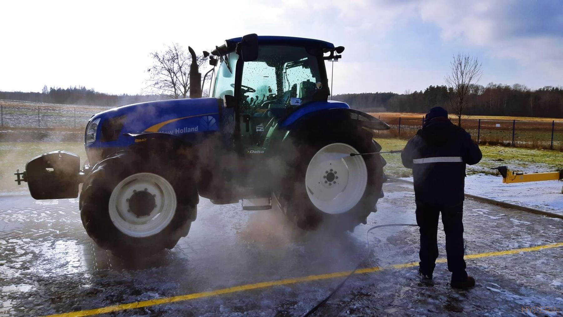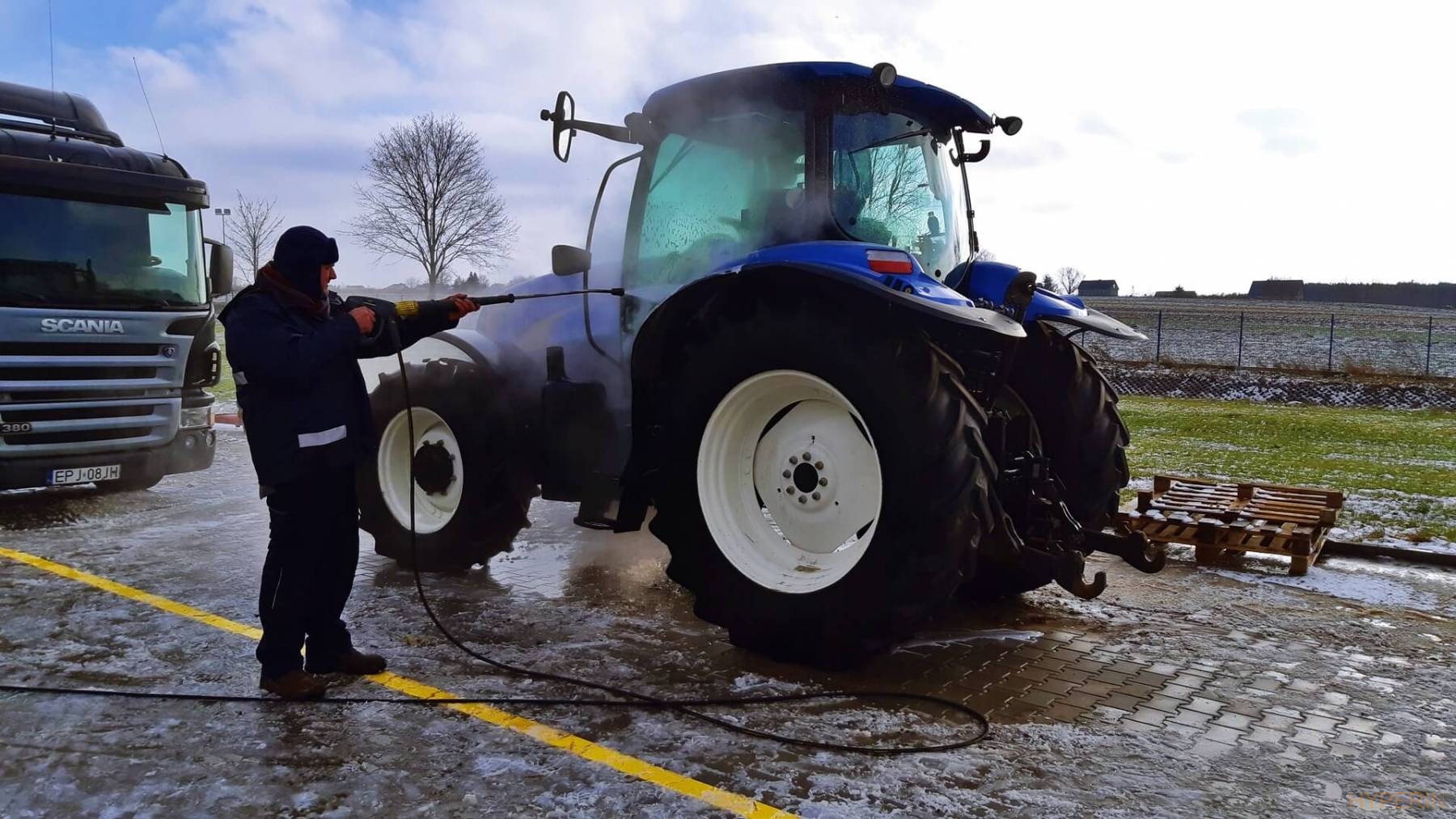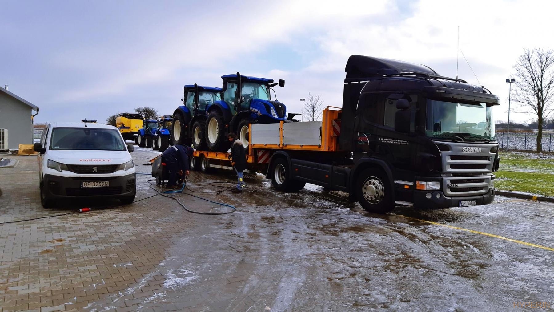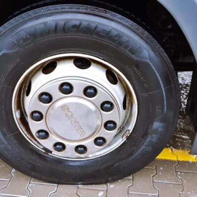W międzyczasie mieliśmy okazję testować nasz środek myjący, na zestawie, który pojawił się na placu . Koncentrat testowany był na początku na kołach ciężarówki, a następnie, zadowolony kierowca sam przeprowadził mycie ciężarówki. Mieliśmy okazję widzieć na żywo, jak sprawdza się Hyperin Agri, do mycia samochodów ciężarowych.