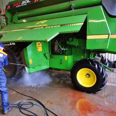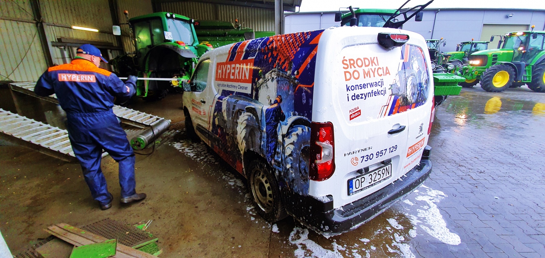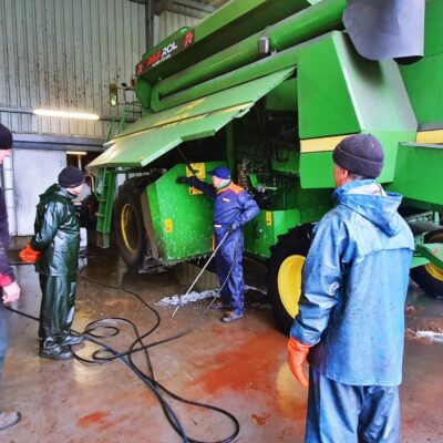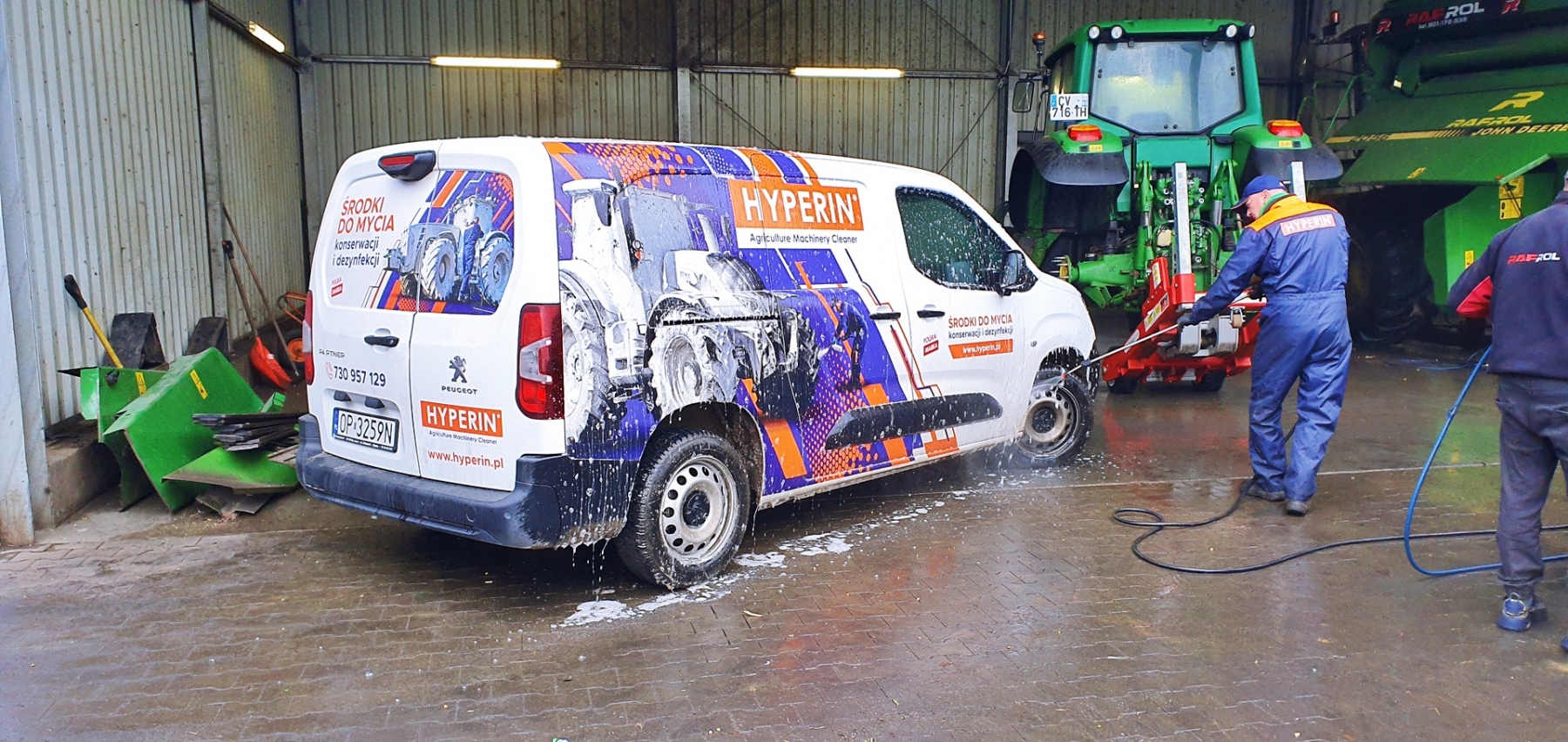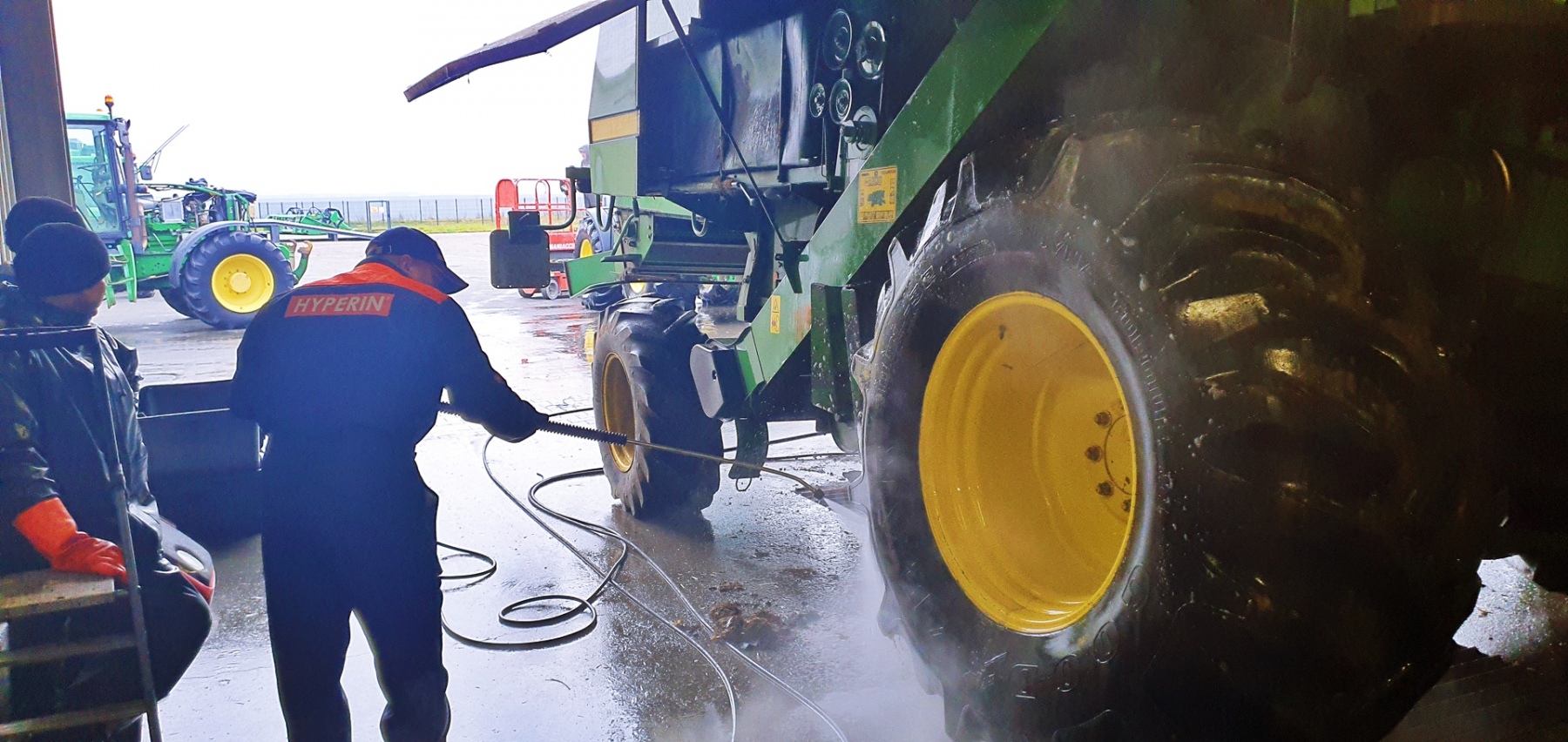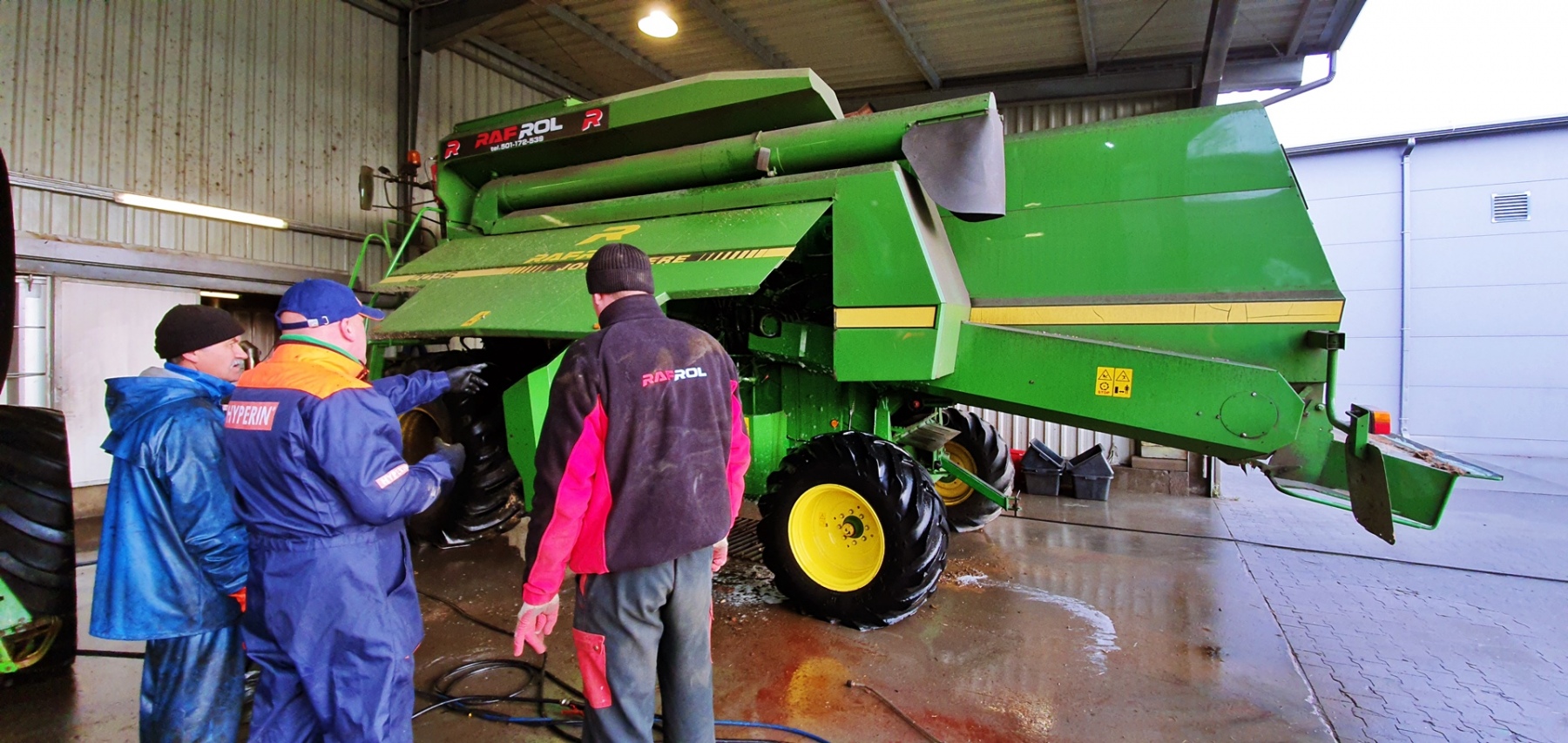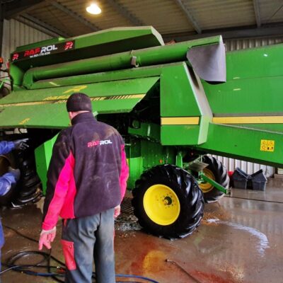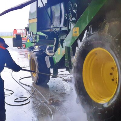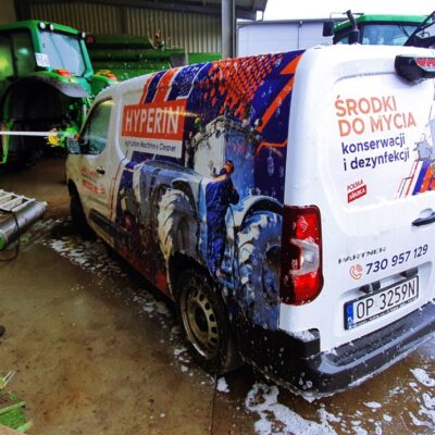 Galeria zdjęć z mycia kombajnu John Deere 2056. Pokaz mycia oraz szkolenie z technik poprawnego mycia, miało miejsce 18.11.2021 w firmie Rafrol, Ługi Retki. Od teraz wszystkie maszyny zakupione w Rafrol śmiało mogą jechać do klientów prowadzących ekologiczne gospodarstwo. Stan czystości maszyn rolniczych, opuszczających dealera, na pewno zachęci nowych nabywców do dbania o nie przy pomocy środków Hyperin. Pokaz miał za zadanie pokazać skuteczność oraz bezpieczeństwo użytkowania środków do mycia kombajnów, traktorów, ładowarek, pługów, opryskiwaczy itd. Pokaz został przeprowadzony na wybranych elementach maszyny rolniczej. Resztę mycia pozostawiliśmy pracownikom firmy Rafrol, zostawiając im próbki środka Hyperin Agri. Podczas pokazu zostały omówione również poprawne techniki mycia, które pracownicy mogli od razu wdrożyć w życie. Dla pokazania bezpieczeństwa środków Hyperin, wymyliśmy również nasz samochód służbowy.