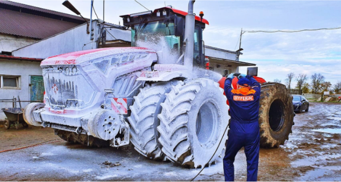 Relacja z mycia ciągnika Kirovets. Zastosowaliśmy pianę aktywną do mycia maszyn rolniczych Hyperin PinEco. Koncentrat z atestem PZH.