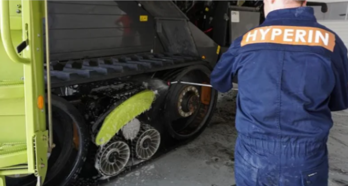 Informacje o Hyperin Biomat, omówienie wykorzystania maty przeznaczonej do mycia maszyn rolniczych.